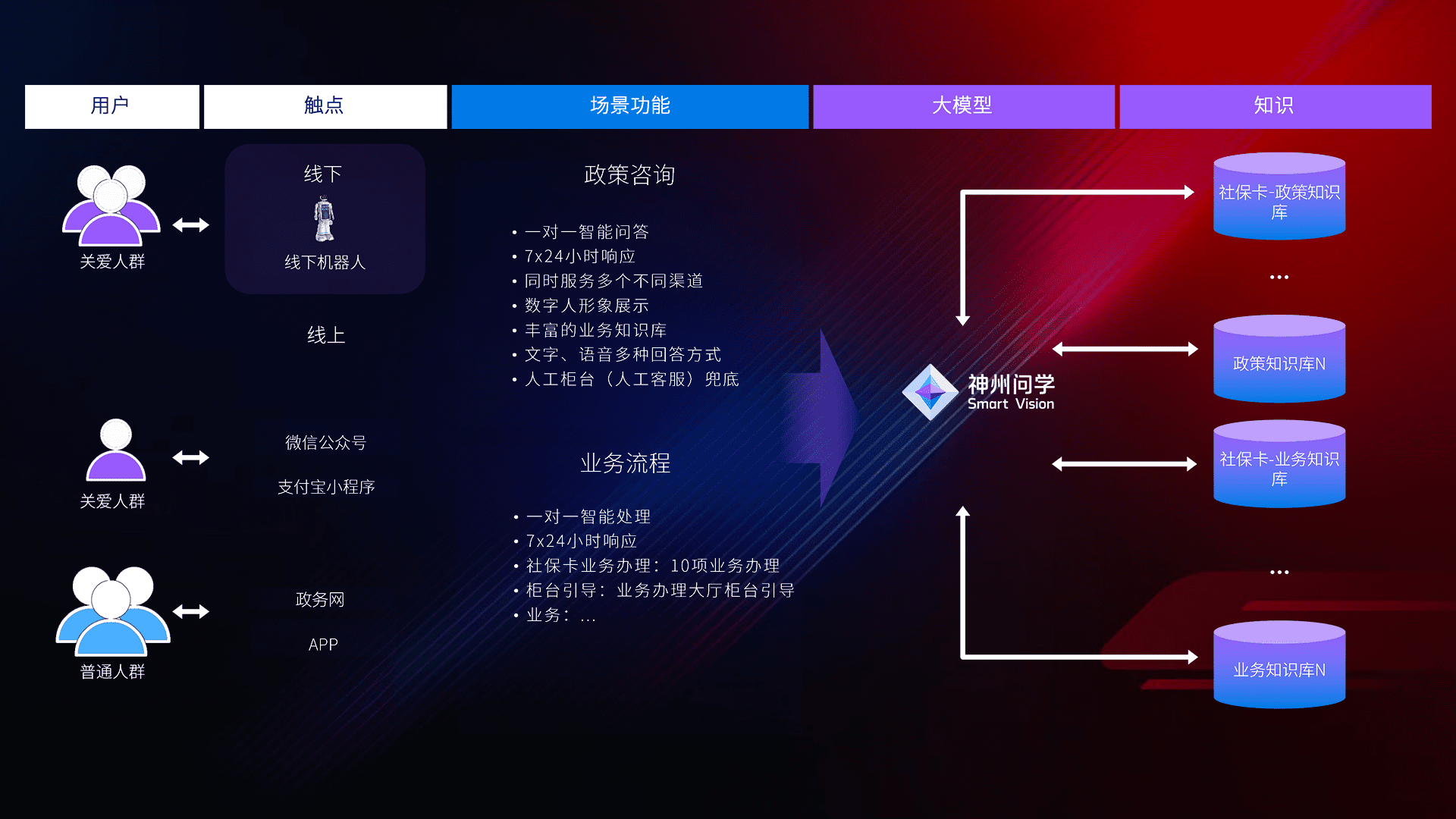 • 线上线下全覆盖:线上提供微信公众号、、支付宝小程序、、、、政务网、、app多种渠道,,,与线下机器人形成完整服务体系。。。。