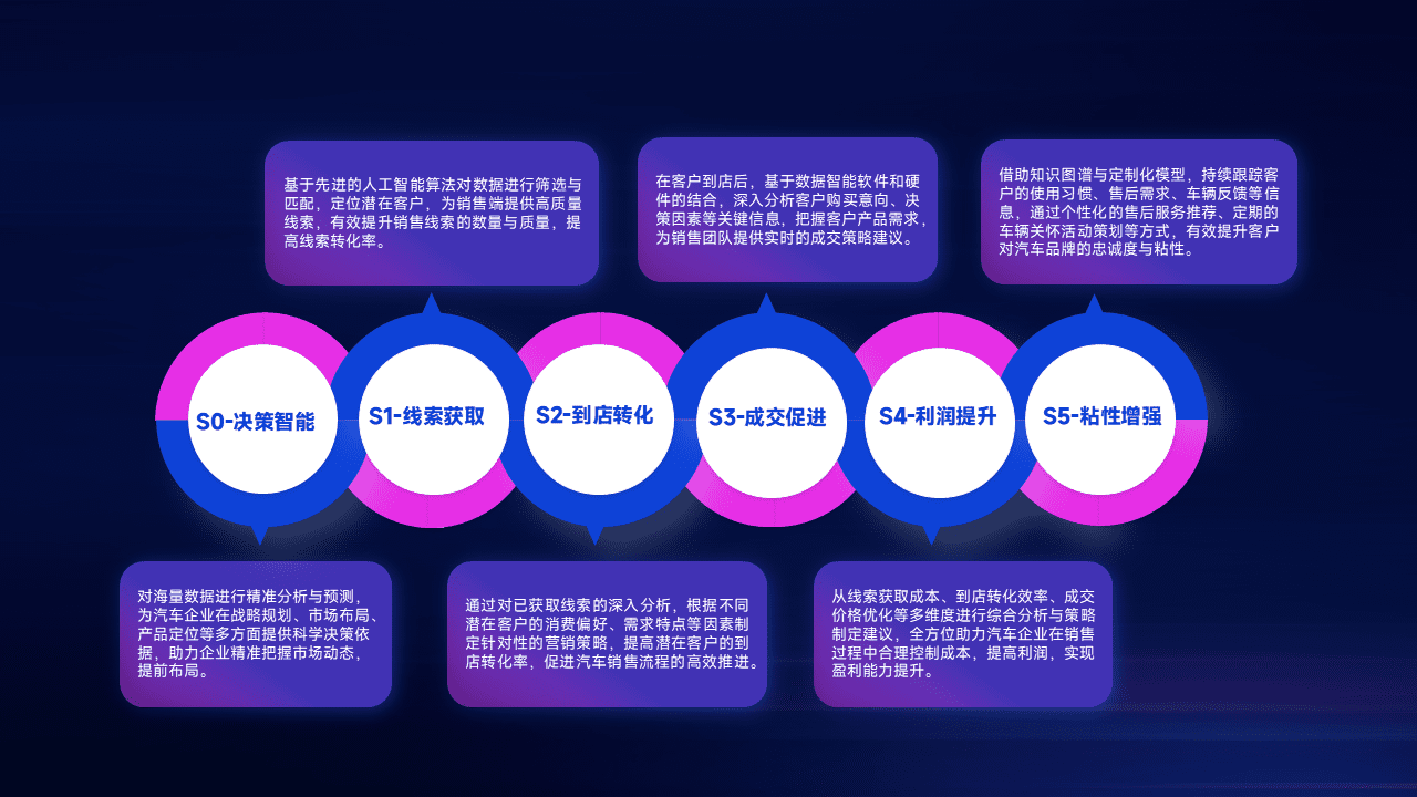 通过拓宽潜在客户来源、、、优化线索分配并提高到店转化率,,,以增强销售效率。。同时,,利用线索数据不断优化分析模型,,,,有效提升转化率,,,扩大营销影响力。。。。